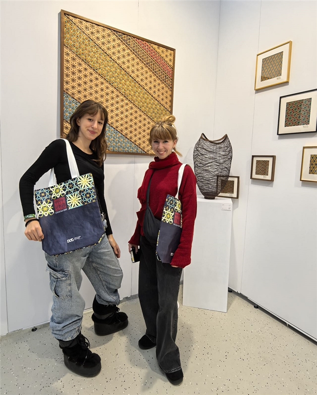 来自江西的国家级非物质文化遗产夏布绣传承人张小红的作品吸引了众多观展人,展现了中国传统文化的精髓,观众通过互动环节近距离体验了其工艺。此外,江西林恩茶作为传统茶叶代表,也备受瞩目,特设的品茶区让观众在品尝江西茶独特韵味的同时,深入了解江西茶文化。竹编艺术家钱利淮的作品《丝路3》《涟漪》将传统技艺与现代艺术理念结合,展现了竹编艺术的独特魅力。中国书画家浦峻则通过绘画和篆刻作品,将古代士人文化与现代元素融合,尤其是《十二星座》系列篆刻作品引发了观众热烈反响。